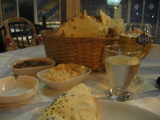 We chose a sea bass out of the cooler and ordered calamari and two mezes spreads to top the famous 'pillow bread'. Our fish was promptly grilled to perfection and served with lemon and rocket, along with tomato and cucumber salad. Washed down with a cold Efes and finished with a massive plate of some of the most tasty fruit I've ever consumed, we left contented, to say the least.
